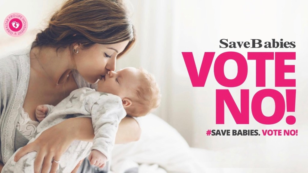 Purtroppo vi sono molti gruppi estremi come “Choice Gibraltar”, “Feminist Gibraltar”, “No More Schame Gibraltar” e “Secular Humanist Society of Gibraltar” che, capeggiati dal Primo Ministro Fabian Picardo, stanno facendo pressione affinché l’aborto venga legalizzato anche in questo paese. Ma i movimenti pro-life non si arrendono e si stannp adoperando perché il referendum abbia esito negativo, da qui l’immagine di copertina della campagna che recita “Save babies. Vote NO”. Il presidente del GPLM, Patricia Parody, ha recentemente rilasciato una dichiarazione in cui ha affermato: